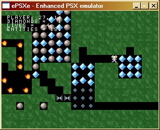 A clone of the classical arcade game with the same name. Main purpose of this project was to study the PSX architecture and PsyQ libraries. The latest game build features 4 different levels and ~90% of original Boulder Dash functionality.