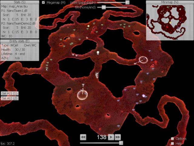 One of the new categories in Microsoft’s Imagine Cup 2005 is called “Visual Gaming”, where participants are given SDK and have to program AI for a team of nano-robots. This year, the whole “game” behind Visual Gaming is called Project Hoshimi, and it features a 3D preview part. Now, this “3D previewer” is exactly what Nesnausk! team have made. Why the organizers (Microsoft) had chosen us to do it - we don’t really know :)