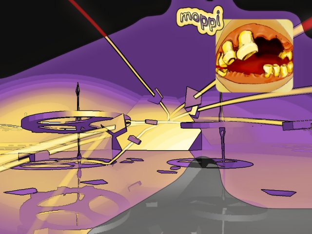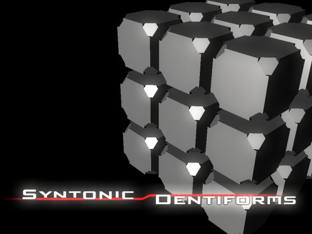 PC Demo, shown at Breakpoint'04 in Germany (it took 6th place of 22). Syntonic Dentiforms is hi-tech style demo with a crazy end, inspired by script by pukomuko. Also big thanks goes to txd, who made great job by creating music. Also thanks to by_Max for 2D graphics.